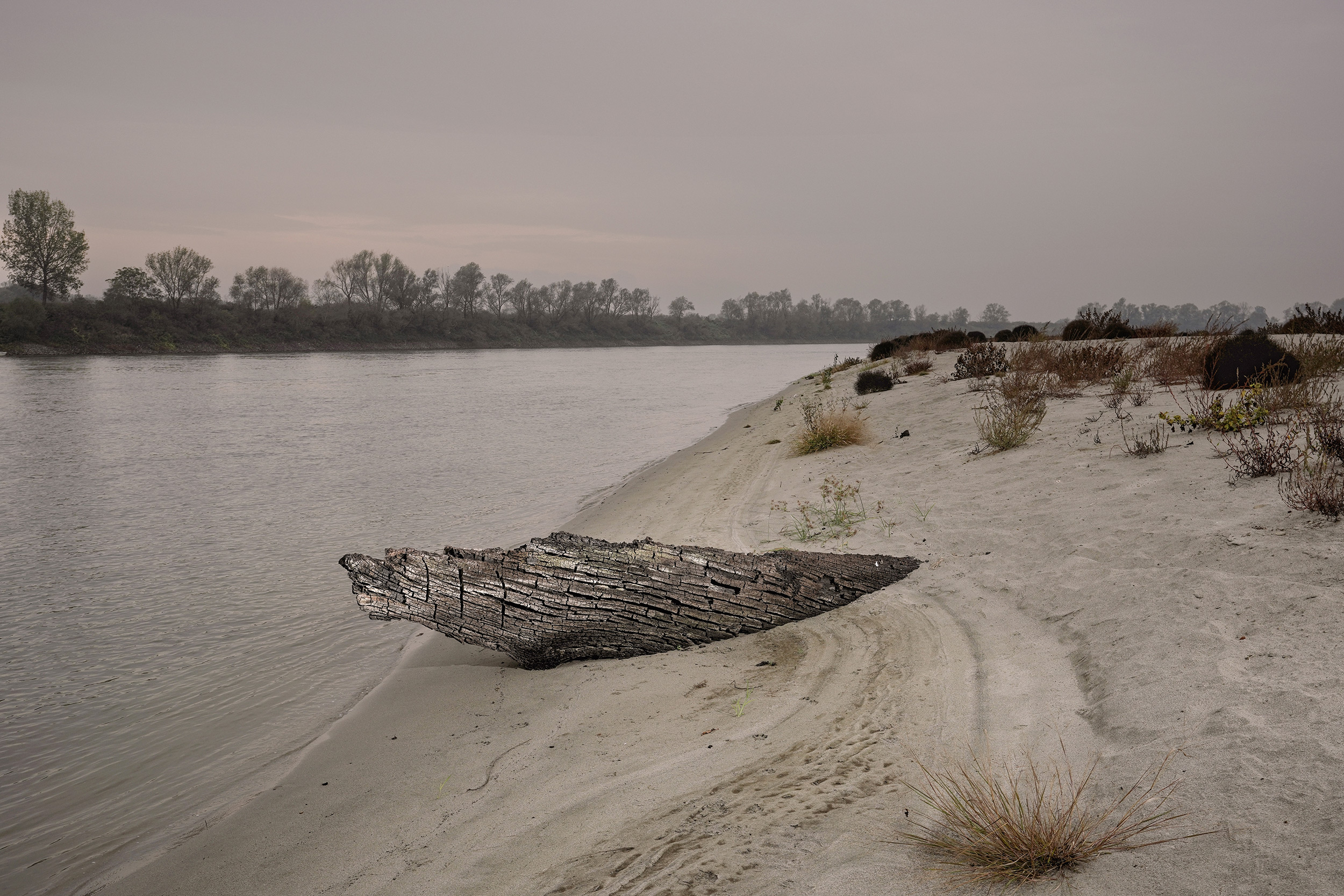 Quest’anno il Grande Fiume ha vissuto la più grave siccità degli ultimi settant’anni, mettendo a rischio oltre un terzo della produzione agricola italiana. Questo drammatico evento, ennesimo segno di un clima in rapido cambiamento, mi ha portato a percorrere le sue sponde per indagare e raccontare questo territorio tanto fragile, quanto vitale per tutti noi. E’ un paesaggio che io percepisco come malinconico, di delicata e sfuggente bellezza lungo le cui sponde vivono circa 16 milioni di persone che amano con devozione questo corso d’acqua in continuo mutamento, ma che – se osservato e vissuto con poca attenzione – appare come statico e immobile.