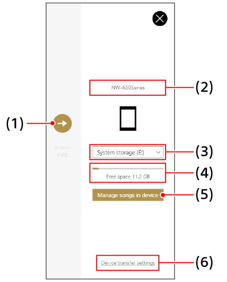 Collegare al computer un dispositivo audio come il WALKMAN® e selezionare il dispositivo collegato da [Trasferimento e gestione] nella barra laterale. Viene visualizzata la schermata di trasferimento