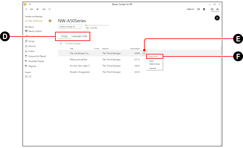 Fare clic su [Gestisci i brani nel dispositivo]