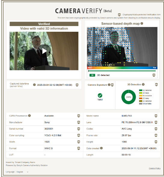 Sony ha annunciato che Camera Verify (beta), una funzionalità della sua Camera Authenticity Solution pensata per le organizzazioni giornalistiche, che consente di condividere all’esterno le informazioni sull’autenticità dei contenuti attraverso un URL dedicato, oltre alle immagini, ora supporta anche i video. Inoltre, anche l'Image Verification Pre-Check Software Development Kit (SDK), che può essere integrato nei sistemi delle organizzazioni giornalistiche, ora supporta anche i video.